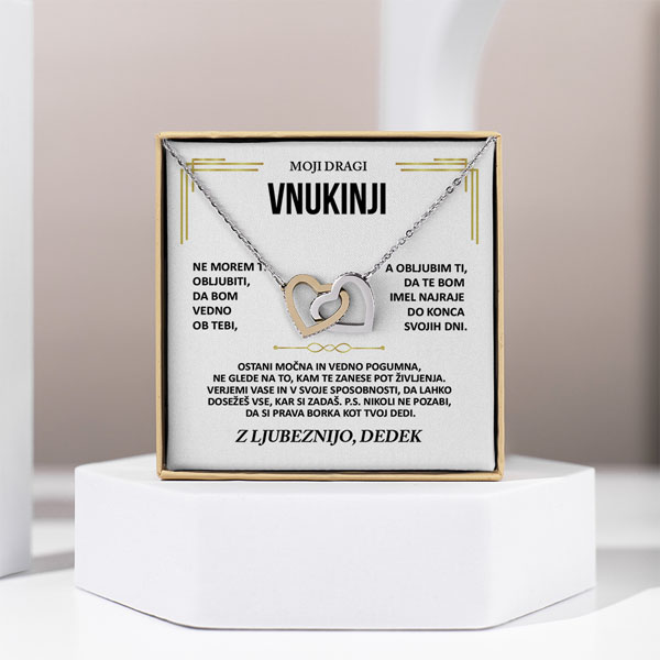 Podarite ji darilo, ki bo za vedno nosilo čustveno vrednost – elegantno ogrlico s sporočilom ljubezni, oblikovano posebej zanjo.