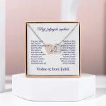 Podarite ji darilo, ki bo za vedno nosilo čustveno vrednost – elegantno ogrlico s sporočilom ljubezni, oblikovano posebej zanjo.