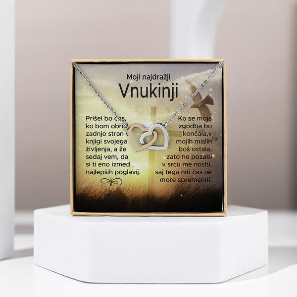 Podarite ji darilo, ki bo za vedno nosilo čustveno vrednost – elegantno ogrlico s sporočilom ljubezni, oblikovano posebej zanjo.