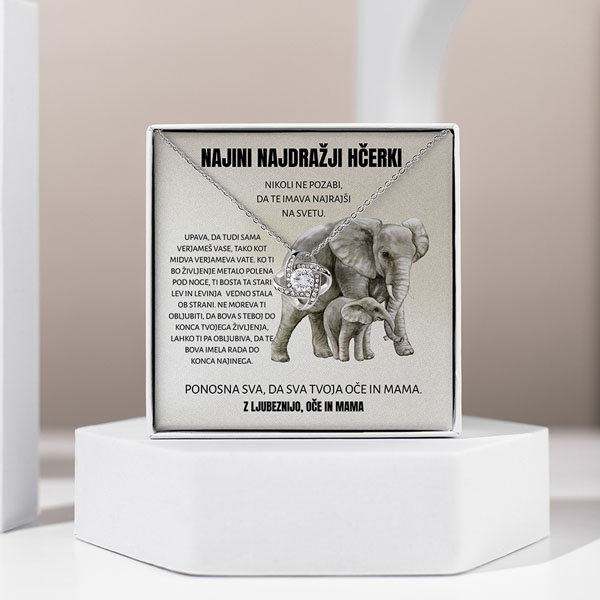 Podarite ji darilo, ki bo za vedno nosilo čustveno vrednost – elegantno ogrlico s sporočilom ljubezni, oblikovano posebej zanjo.