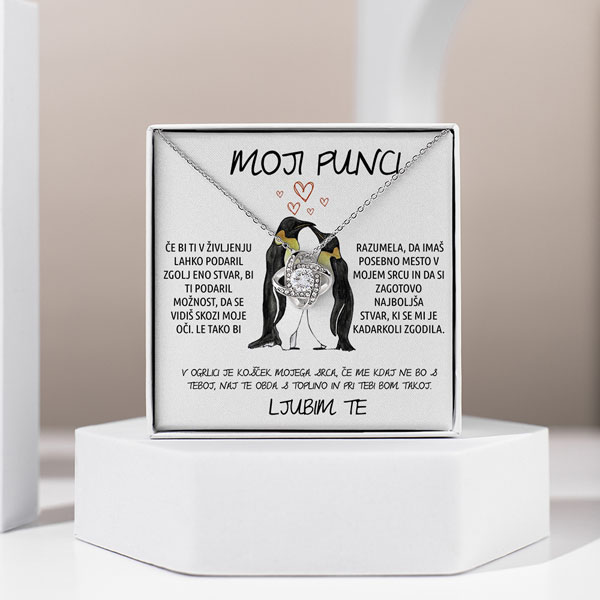 Podarite ji darilo, ki bo za vedno nosilo čustveno vrednost – elegantno ogrlico s sporočilom ljubezni, oblikovano posebej zanjo.