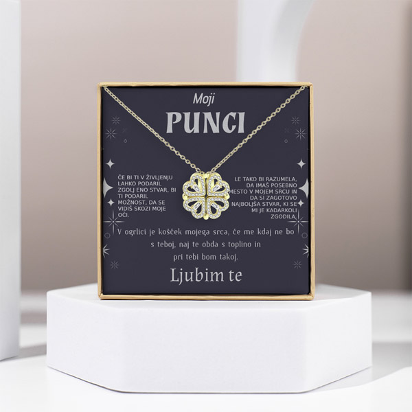 🎁 Čarobna ogrlica se preoblikuje iz štiriperesne deteljice v vrsto src, kar omogoča edinstveno izražanje vaše povezanosti. Ogrlica ni le modni dodatek; predstavlja čustva in vezi, ki jih nosite v srcu.