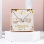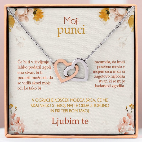 Podarite ji darilo, ki bo za vedno nosilo čustveno vrednost – elegantno ogrlico s sporočilom ljubezni, oblikovano posebej zanjo.