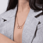 Ogrlica združuje prefinjenost in sodobni dizajn, kar jo naredi primerno za vse priložnosti – od vsakodnevnega nošenja do posebnih dogodkov.