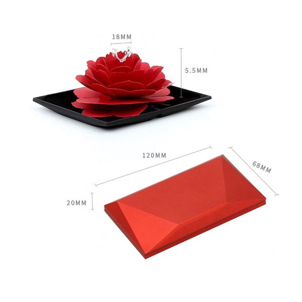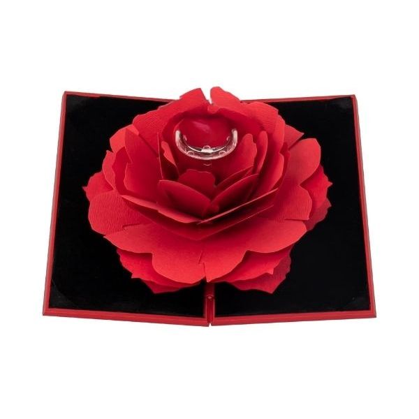 Izdelana je iz visokokakovostnih materialov, ima trpežno plastično notranjost in mehko flanelo za zaščito prstana, zunanja vrtnica pa je izdelana iz vrhunskega papirja za realističen in brezčasen videz. Kompaktna in diskretna zasnova omogoča, da jo preprosto pospravite v žep plašča, zato je popoln spremljevalec za nepričakovane ponudbe, obletnice ali posebna darila.