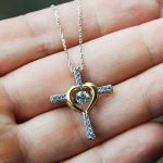 💝 Ta ogrlica, okrašena z diamantnim križem in zlatim srcem čudovito uteleša ljubezen in vero.