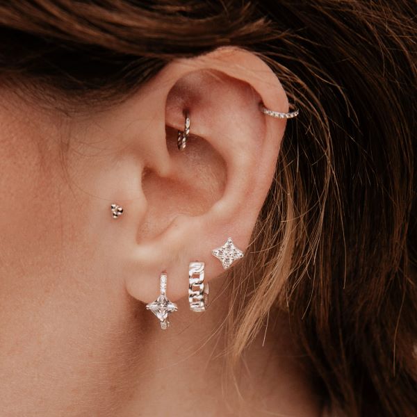 Piercing Nadiva je eden od osnovnih kosov, ki se prilega najrazličnejšim stilom in kombinacijam uhanov. Omogoča vam številne možnosti nošenja v spodnjem delu ali na zgornjem robu ušesa. Uhan je na voljo kot en kos in je primeren za kombiniranje z vsemi drugimi uhani.