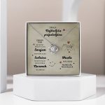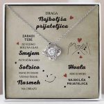 Podarite ji darilo, ki bo za vedno nosilo čustveno vrednost – elegantno ogrlico s sporočilom ljubezni, oblikovano posebej zanjo.