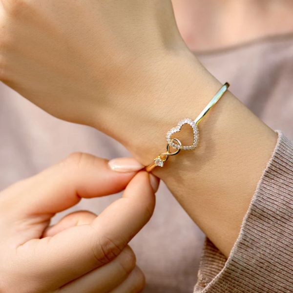 Zapestnica združuje neskončni simbol z motivom srca, kar predstavlja večno ljubezen in nerazdružljivo povezanost.